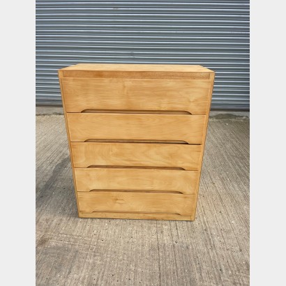 A 1960s five drawer chest by Liden in birch ply. In good original condition.76cm wide 38cm deep 94cm high 13cm internal drawer height