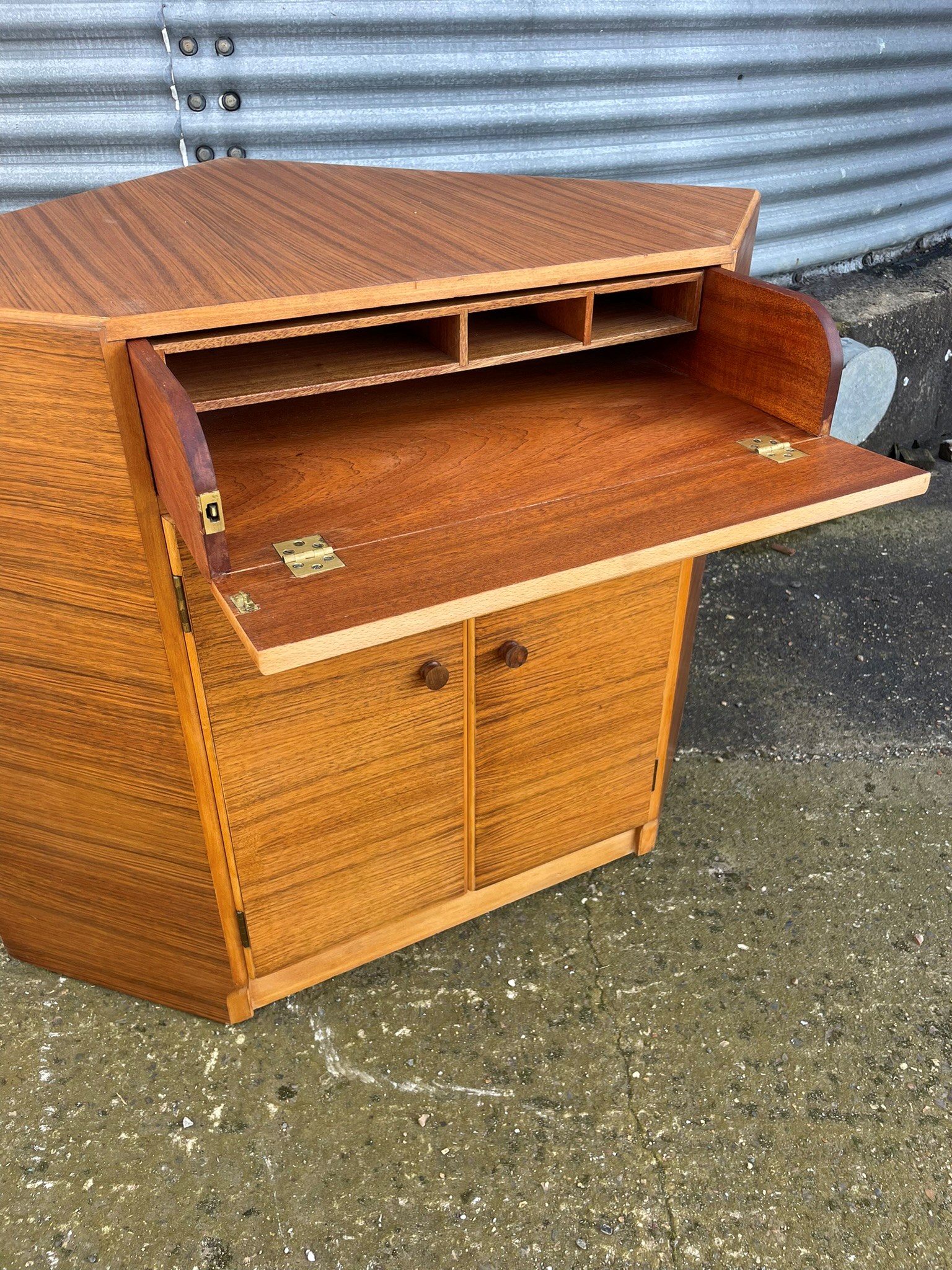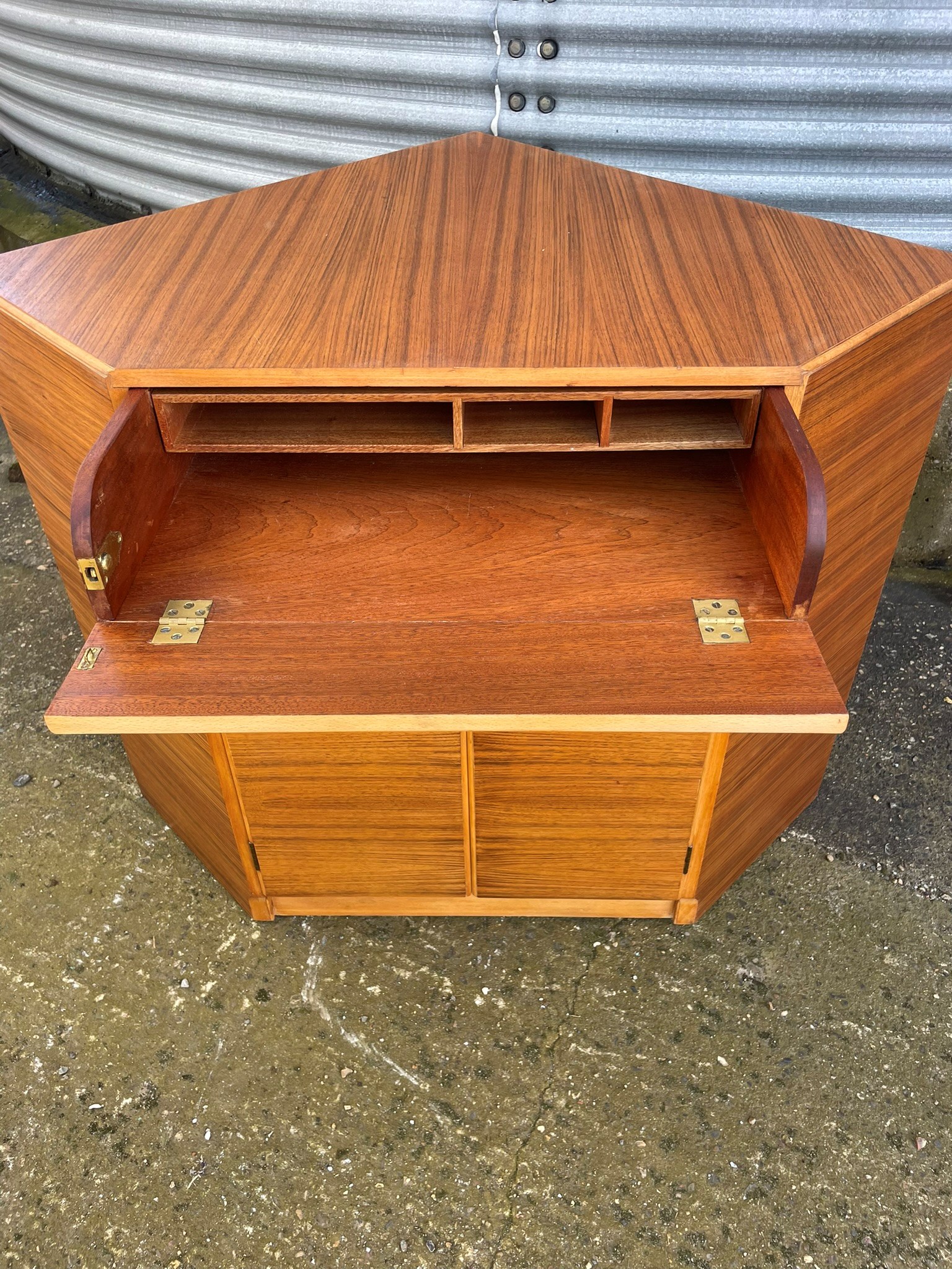 Appearing to be a simple corner cupboard at first glance the top drawer of this cabinet pulls out to reveal a desk, the front of the drawer dropping to form part of the work surface. This is modelled on the original design of the secretaire cabinet.