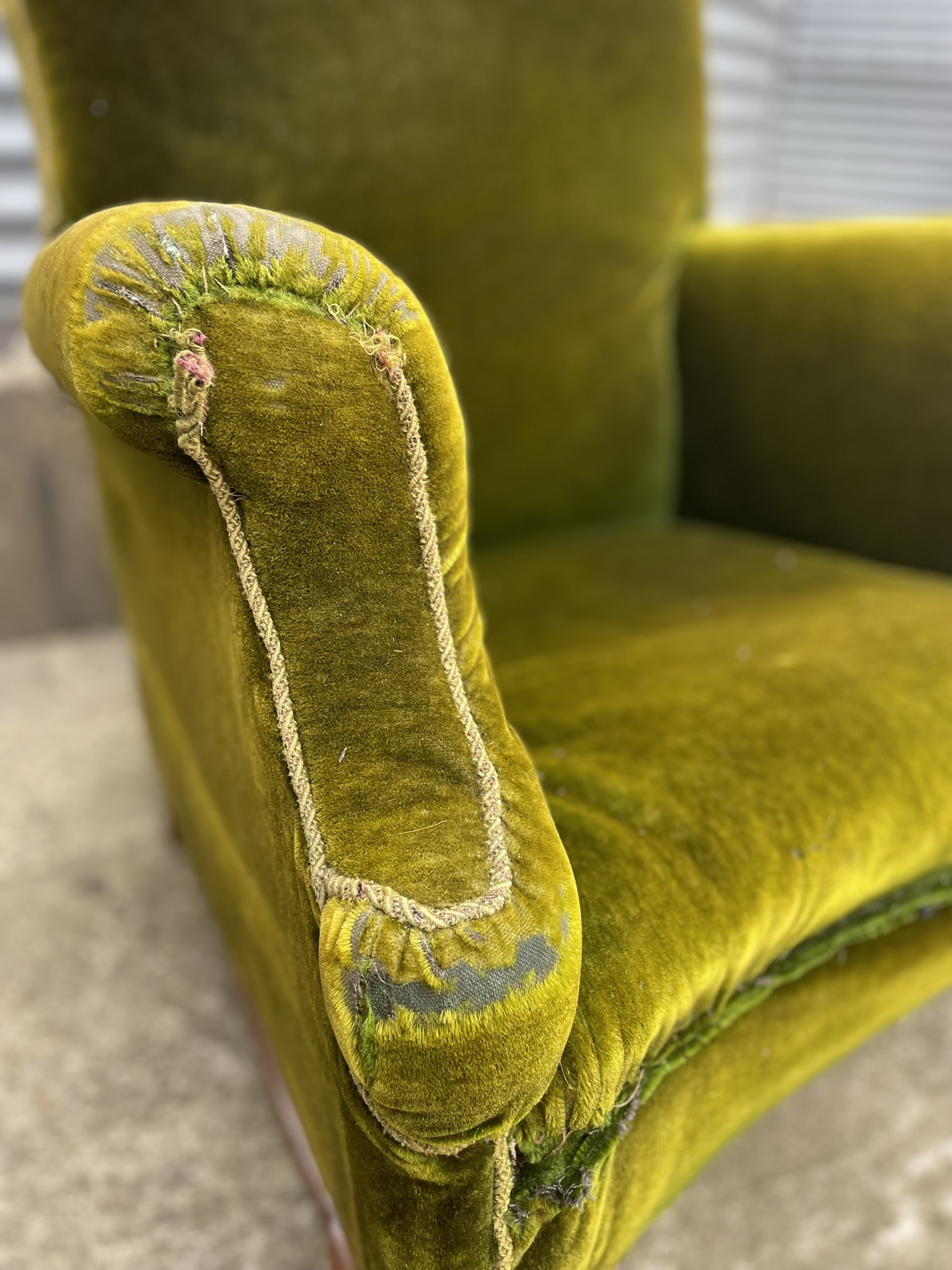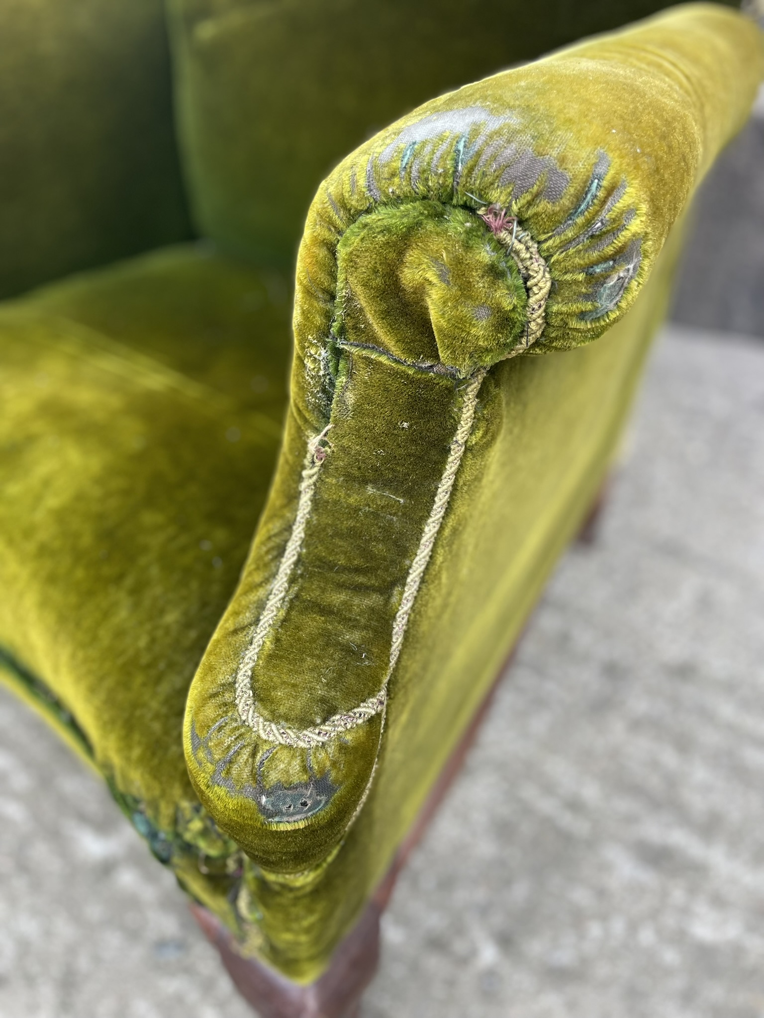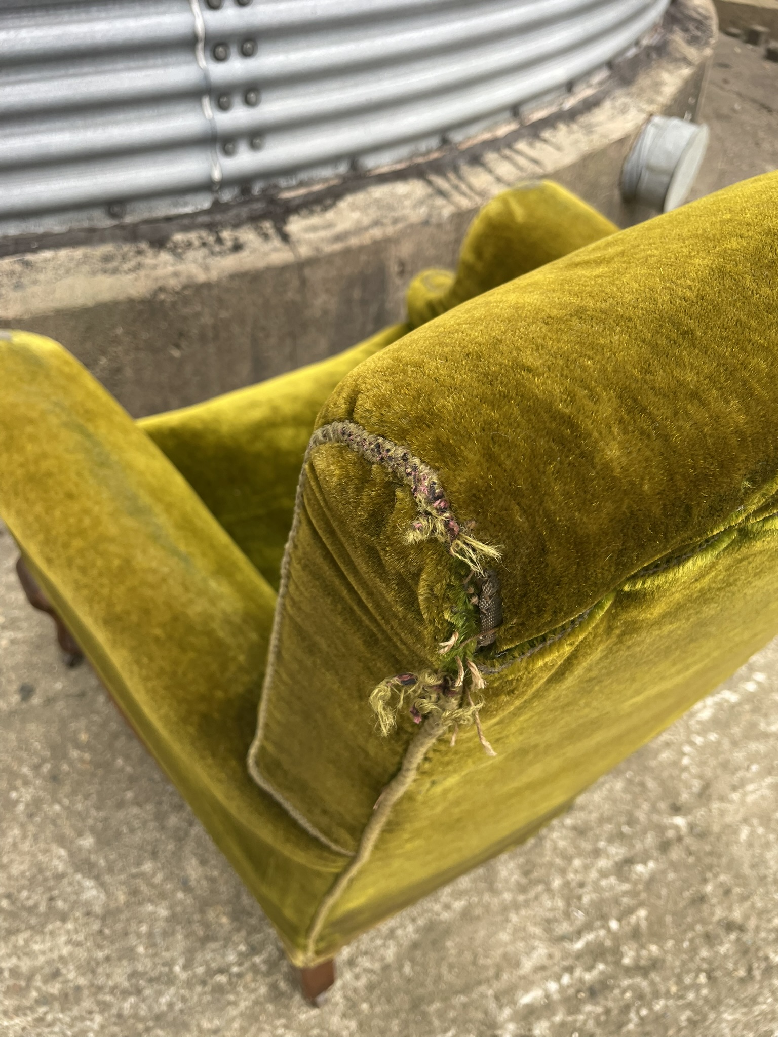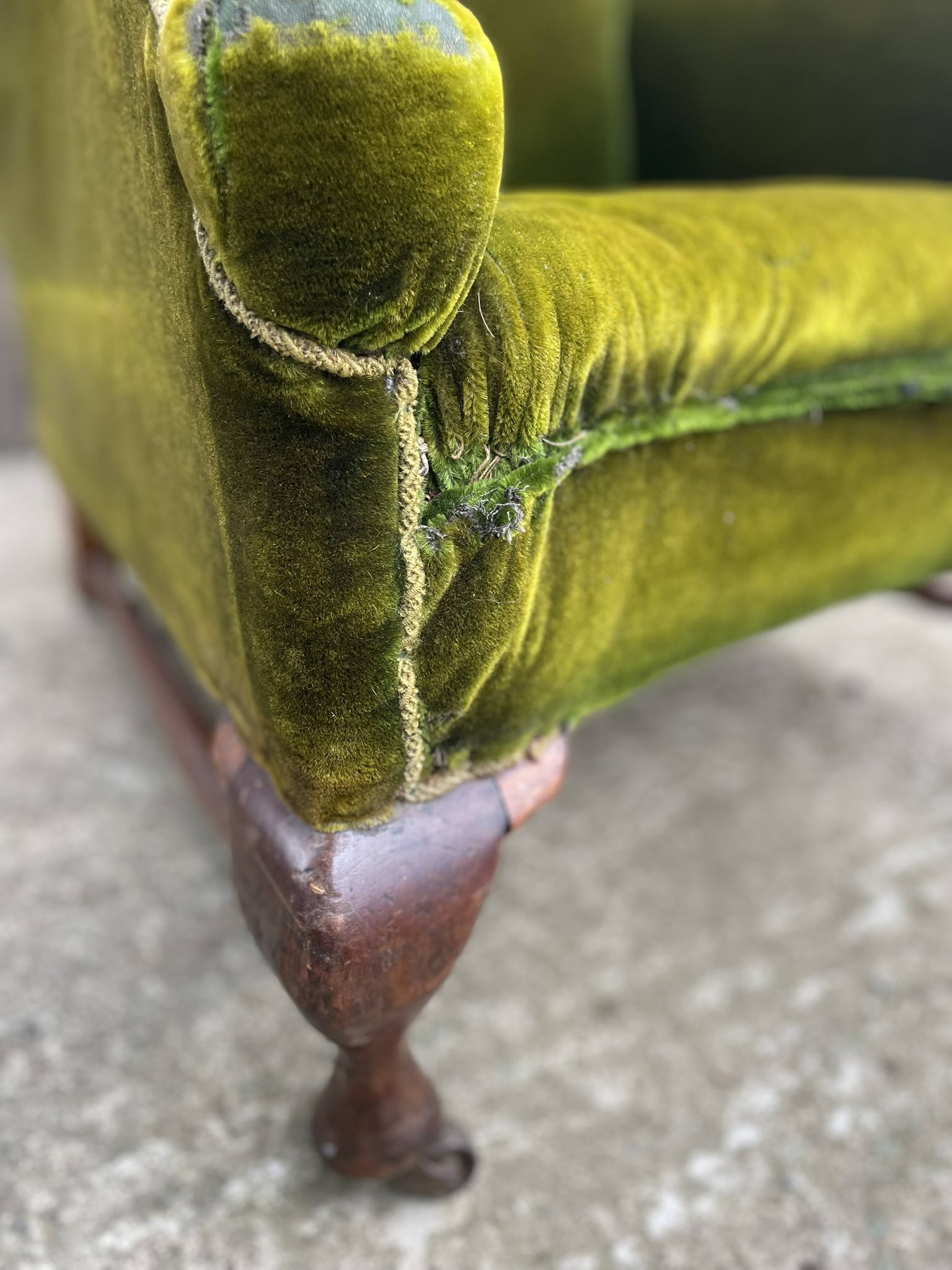 19th C green velvet armchair